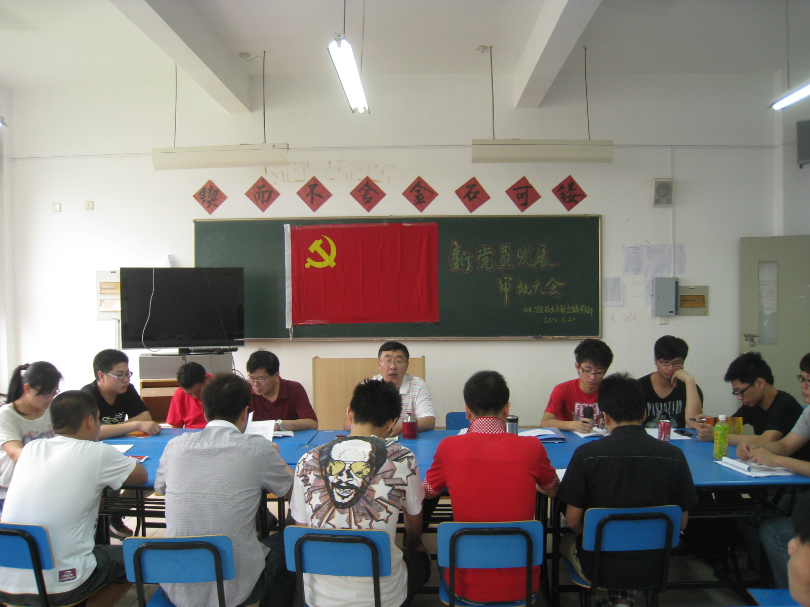 2013年6月20日,在机电系、信息系联合直属党支部的召集下,本系所有党员老师以及学生党员在5号楼206室召开了关于张辉辉、孙宜雷、徐永懋、陆瑜维四位同学的新党员审批大会。会议现场,邀请了本系所有学生入党积极分子前来观摩学习。整个会议过程庄严神圣。严格按照新党员审批流程进行。