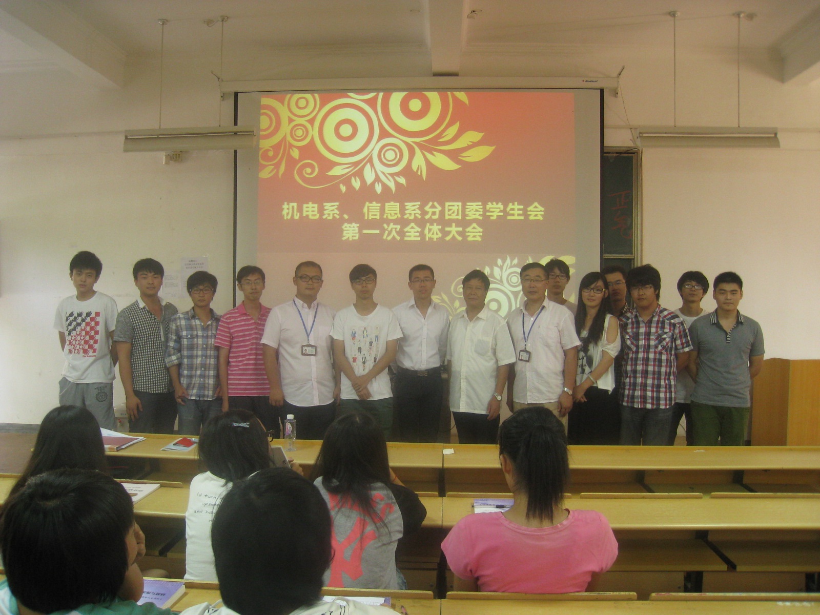 2013年9月18日上海市中侨职业技术学院机电系、信息系学生会2013届第一届学生会议在培训楼B楼103举行。参加此次会议的有四位老师。以及学生会的各级干部:学生会主席,副主席,以及组织部、外联部、秘书部等部的部长与副部长,以及通过面试,进入试用期的50名2013届大一新生。