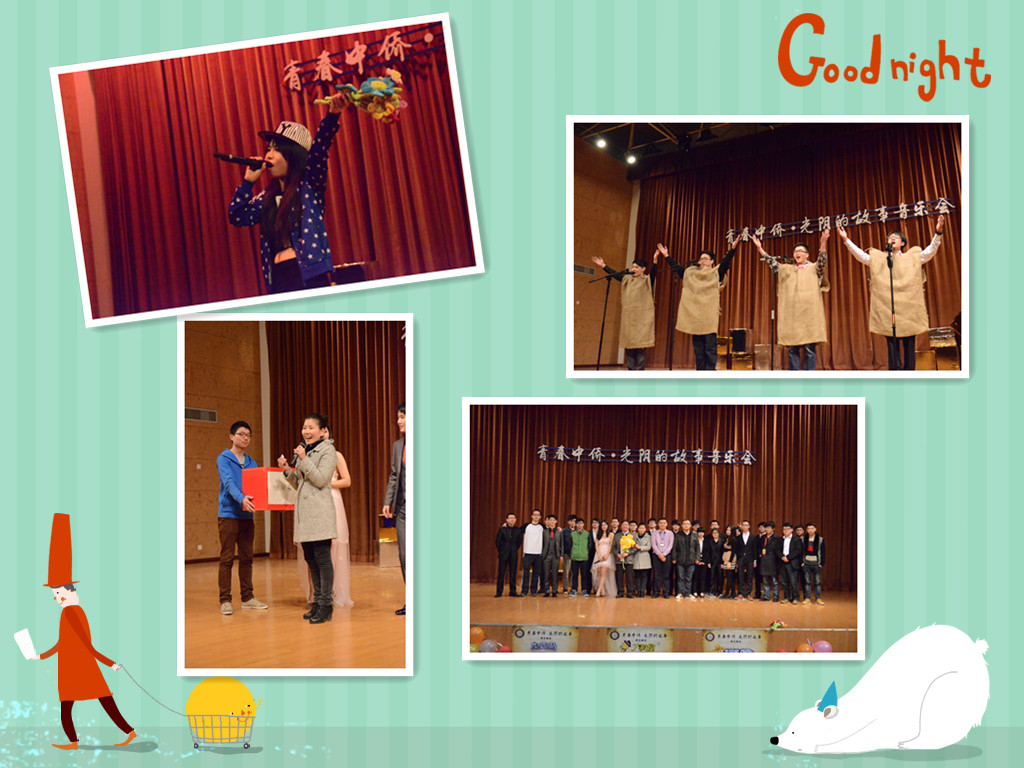 最后,晚会在一首《光阴的故事》中结束。这次的音乐晚会是在工作人员的共同努力下才得以圆满结束的,他们的的忙碌,辛勤,热情和积极,更是本次晚会的亮点。(投稿:13计网张燕)