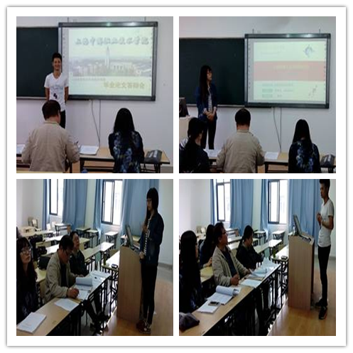 为了进一步加强我系的教学工作,完善教学环节,2015年5月6日我系迎来了12级毕业班论文答辩会。由于毕业生论文答辩是大学生人才培养方案的重要组成部分,我系对本次论文答辩工作是十分重视的。按照系部的安排,指导教师对学生论文进行了细心指导,从选题、开题报告、初稿、修改到定稿,都倾注了指导教师的心血。5月6日11:30,参加答辩的学生早早地在教室外等候答辩了,答辩小组成员由各位指导老师组成。在正式答辩会开始前,指导老师就答辩的具体问题进行了简单的说明,答辩分为三个部分,首先是学生对论文的写作背景以及主要内容进行自述,其次是答辩小组教师针对对论文内容以及学生自述进行提问,最后是毕业生就答辩小组教师所提问题进行论述与解答。在历时2个小时的答辩过程中,答辩小组本着认真、严谨的态度听学生将三年所学的知识以答辩的形式展示出来,学生也沉着冷静、机智应答老师的问题。其中不乏主题鲜明、观点独到的优秀毕业生论文。