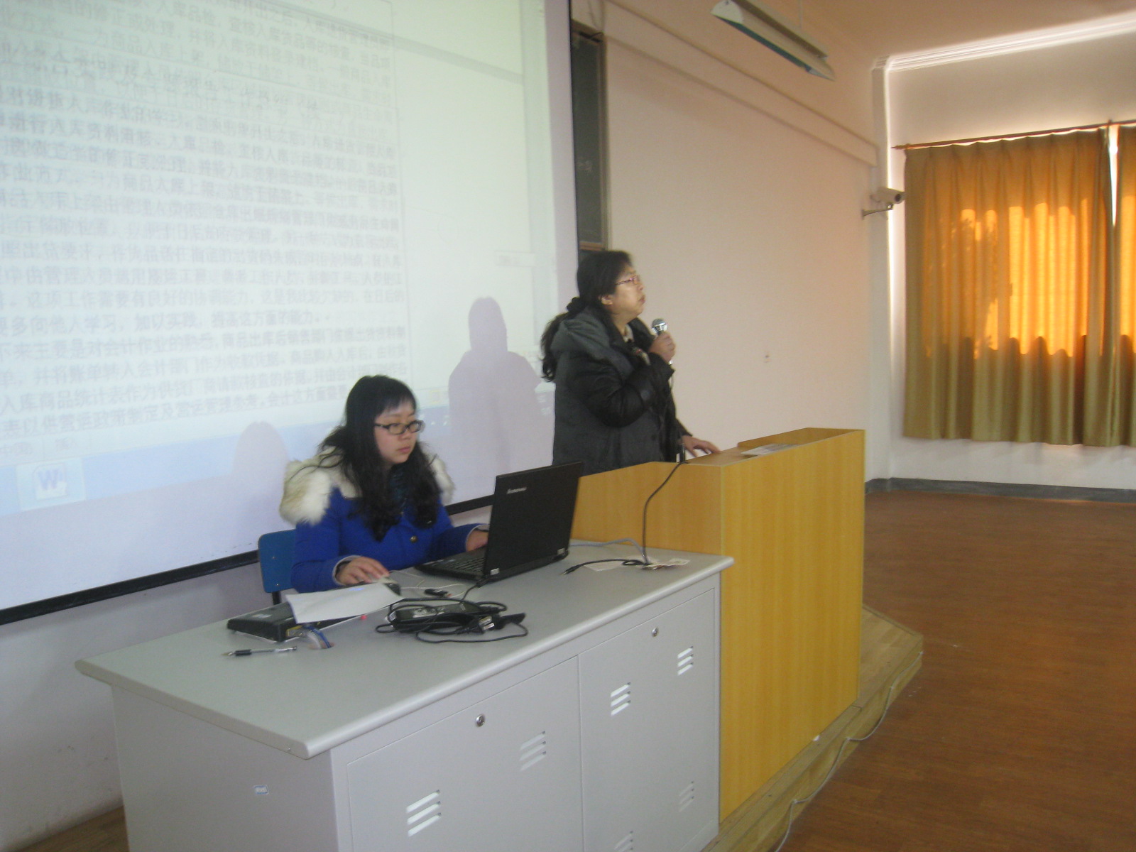 2014年3月6日11:30,我系11级全体学生返校于培训楼103室召开了毕业综合实践工作动员会。动员会首先由本系副主任赵欣老师作了动员,明确了毕业实习的形势和任务,帮学生认清了毕业综合实践工作的重要性;系主任助理杨玲老师详细介绍了2011级毕业综合实践工作过程实施计划和具体要求,强调了本次实习过程中应注意的问题并对撰写的相关报告作了统一规范;最后要求每位学生找到各自的带教老师,带教老师再将前面所作的一切要求细化给学生,秉承一切为了学生的宗旨,每位带教老师必须严格要求学生,保质保量的完成相关工作。