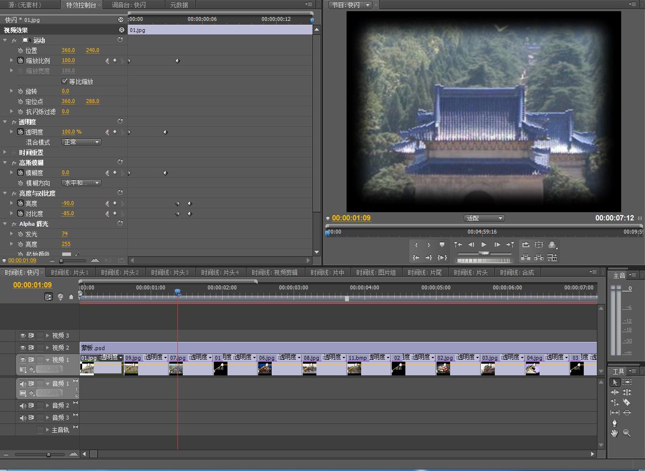 在平时的的Premiere课程学习中,我们只是依据课本的知识来一步步完成最基本的操作,为了完成作业而去学习。只是能对软件有基本的掌握,并不能熟练地去操作。在实训过程中也遇到了平时上课没有遇到过的问题,而此时也只能凭着自己去解决。在这次实训过程中,遇到的最主要问题就是素材,在找全素材之后才能制作,将视频音频以及图片导入,对图片进行时间,动画的变化等等的调整,在对声音和视频进行时间,特别是音频,利用选择工具对声音进行大小的调整,对视频的效果进行调整时,选择不同的特效效果也是大大不同的。