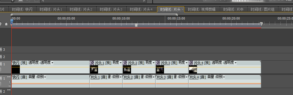 新建片头1时间线将图片插入相应的视频轴中在为图片相接处插入特效。