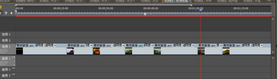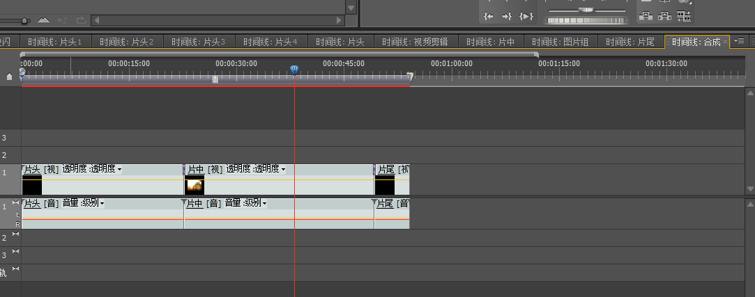 最后讲片头,片中,片尾添加进同一个序列,完成视频的合成制作。 |