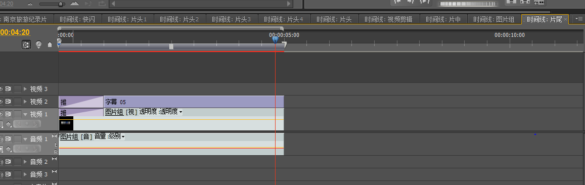 新建序列,讲所有片头序列添加进时间轴中,完成片头的制作,再打开素材视频,按照景点进行剪辑,讲剪辑好的视频加上字幕文件完成片中的制作,再新建序列,添加素材图片并加入特效作为片尾之中的素材,最后新建片尾序列讲字幕和编辑好的图片序列添加进时间轴,并加入推的特效完成片尾的制作。