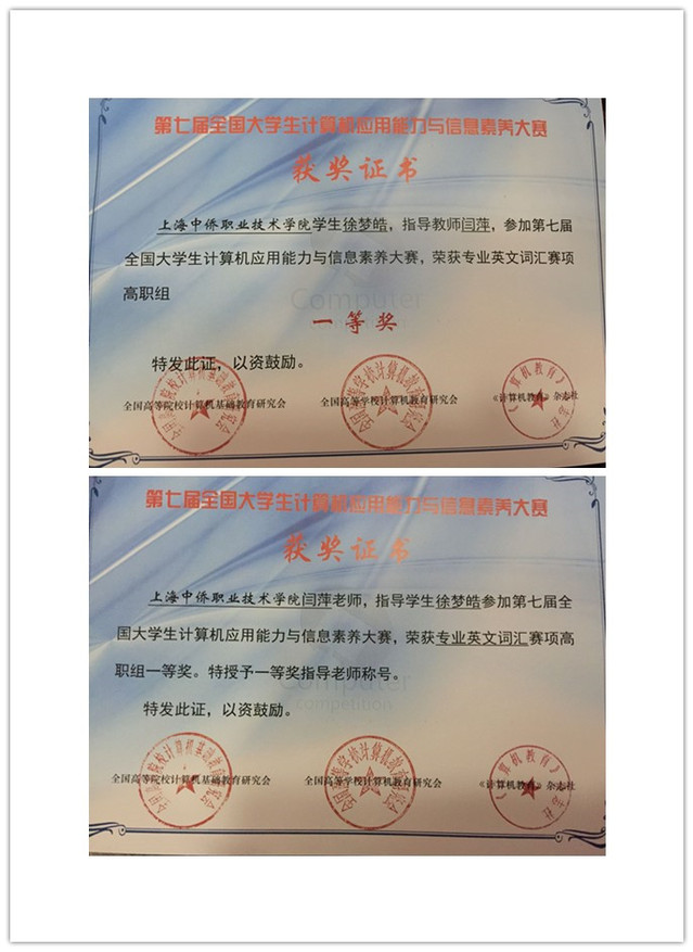 热烈祝贺中侨学子在第七届全国计算机应用能力与信息素养大赛中获得优异成绩