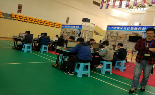 本次物联网技术应用赛项主要包括物联网硬件设备安装调试(40%分值)和物联网技术应用App软件开发(60%分值)两大模块。每位选手都要完成这两块自己的任务,计入个人成绩,六位选手的个人成绩累计求和,计入团队成绩。我校参赛的6位选手是从信息技术系各个专业挑选出来的优秀学子,他们是15级计算机应用1班董曾杰同学,李甫凯同学,15级计算机应用2班徐威同学、蔡跃聪同学,15级计算机网络技术班苏中奇同学、钱瀚林同学。