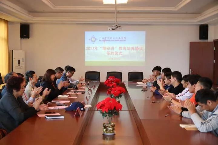 2017年10月19日下午,8名2017级汽车专业(驾驶教练方向)学生与学校及上海云之科技股份有限公司荣安驾校在图文信息中心518会议室共同签订教育培养协议,成为“荣安班”一员。卓丽环副校长主持签约仪式。