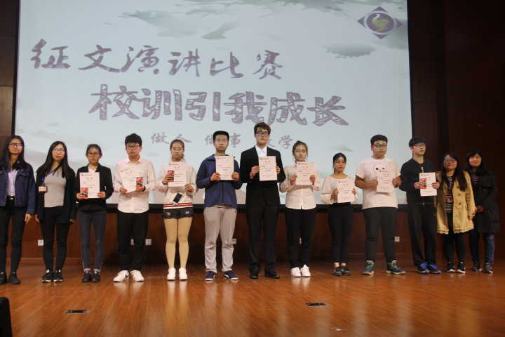 通过这次比赛不仅为有演讲爱好的同学提供了一个成就梦想、释放激情的舞台,更是让每一个同学理解了校训的意义,校训体现了学校的办学原则和目标,同时它也是一种文化,是一种面向社会的精神标志!