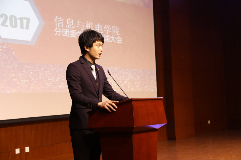 2017年11月7日,信息与机电学院在图文信息楼报告厅召开了2017-2018学年换届大会。本次出席会议的领导嘉宾有信息与机电学院常务副院长罗宁教授、校团委书记朱范鑫、信息与机电学院党总支副书记刘群、校团委副书记唐帆、信息与机电学院分团委书记吴剑。
