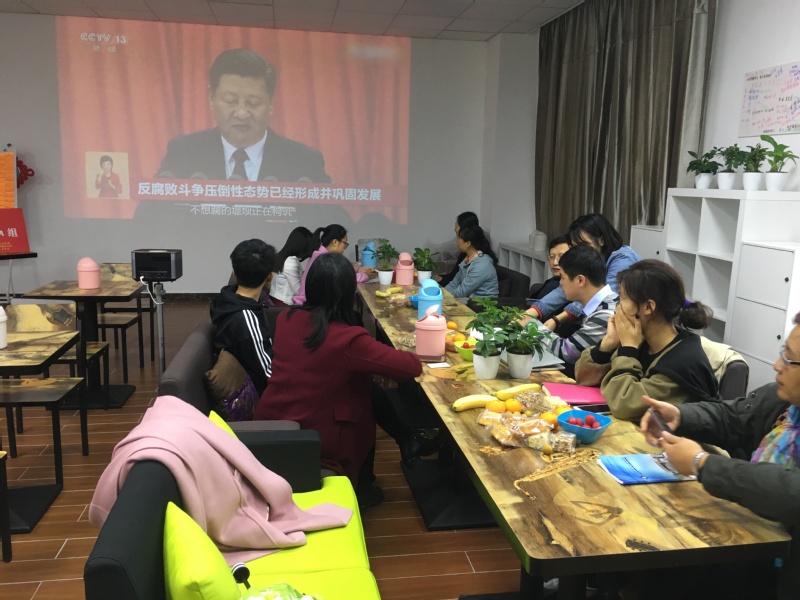 会上,与会党员共同观看视频回顾十九大主要内容,领会会议精神,展望中国未来发展的宏伟蓝图。大家共同学习习近平新时代中国特色社会主义思想并结合教学工作对如何提升教师和学生在教学和学习过程中的幸福感和获得感分别交流学习心得,为教学工作、学生管理工作、专业建设和学院整体发展畅所欲言,献计献策。姜晶晶老师说:“学生之所以不能很好的体验课堂的教学,问题在于没有信仰和目标,必须鼓励学生能够建立自己的自信心以及提升自身的认可。”李建华老师认为应当在课堂上提升学生的成就感,多鼓励学生,采取适当的鼓励机制。蒋建国老师提到要不忘初心跟党走,为学生服务就要为学生首先建立一个学习的环境以及灌输学习重要性的思想。与会党员们一致觉得现在是发展的好机遇,要鼓励学生去迎合新的技术和新的时代,在机遇中抓好契机。