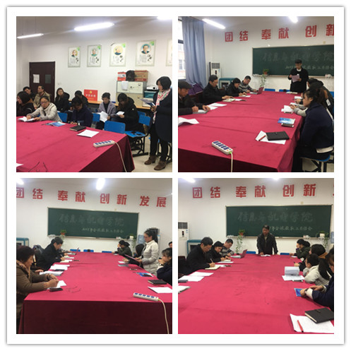 2017年12月28日12点30分,信息与机电学院全体教职工年终总结大会在4号楼201会议室举行。常务副院长罗宁、副院长赵欣、副院长李国栋、党总支书记郑念、副书记刘群等学院领导出席本次会议。
