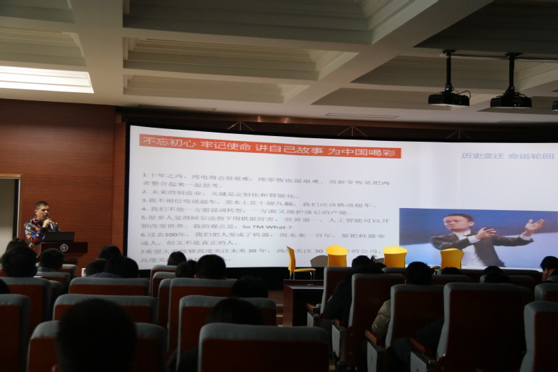 2017年12月27日,6号楼306报告厅座无虚席,同学们不断的报以热烈的掌声,“学习宣传贯彻党的十九大精神”巡讲活动正在进行时,本次巡讲创新分为两个部分:第一部分“十九大精神”巡讲,由刘群老师主持;第二部分师生访谈,由端木潘婷老师主持。