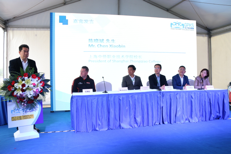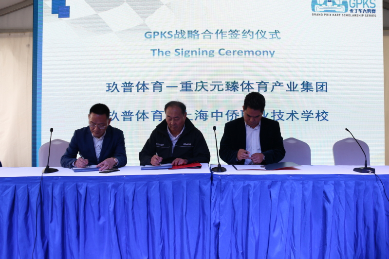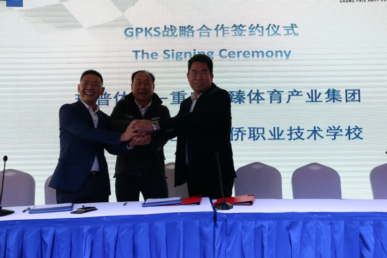 4月14日上午,2018GPKS未来之星卡丁车大奖赛第一站在嘉定上海国际赛车场卡丁车世界举行新闻发布会,玖普体育文化传播(上海)有限公司分别与重庆元臻体育产业集团、上海中侨职业技术学院签订战略合作协议。陈晓斌校长出席签约仪式并代表学校致辞。