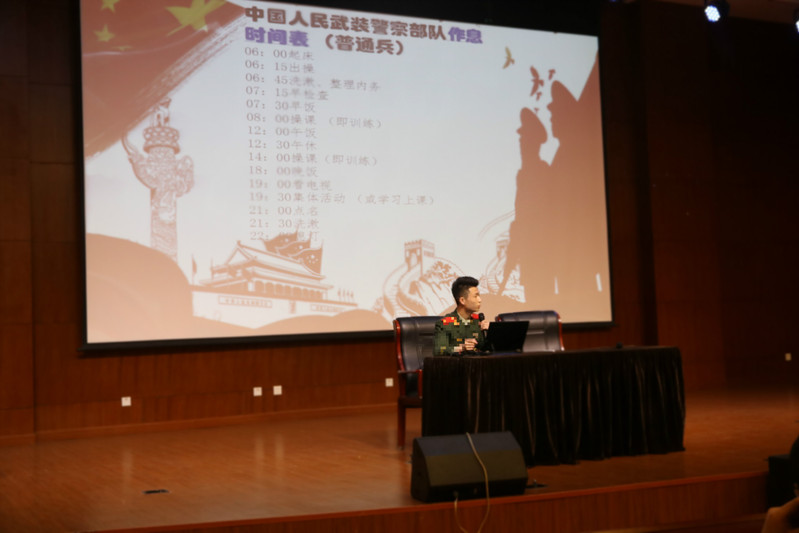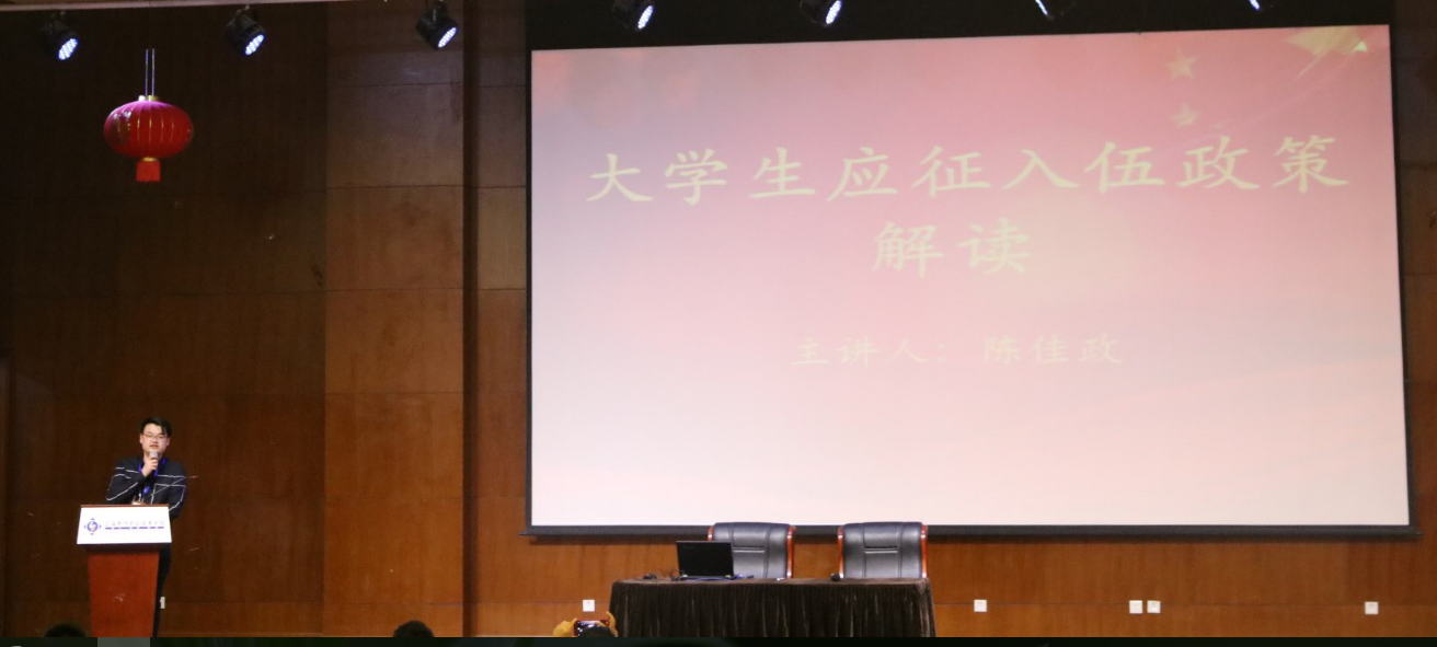 首先,学校负责征兵工作的陈佳政老师为大家解读了征兵政策。针对大学生享受优惠政策,在经济待遇、部队发展、选拔干部及选举士官、复学升学、扶持就业、退役安置等问题做出详细解答。他希望同学们的报国之心化为报国之行,鼓励大学生要敢于有梦、敢于追梦、敢于圆梦,让青春在军营的历练中、在为祖国的奉献中闪光。