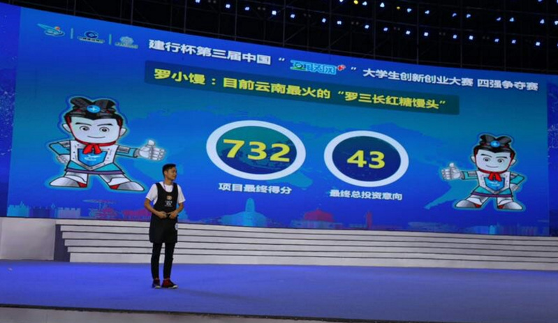 在9月17日上午举行的金奖项目四强争夺赛上,当大屏幕显示出“罗小馒:云南最火的罗三长红糖馒头”项目的评委打分结果——732分、43个投资意向时,现场响起了一片掌声和欢呼声。