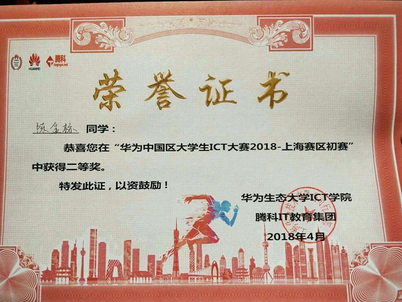 正所谓,机会是留给有准备的人,每一个人获奖后的瞬间都是他们自己日夜苦战,用自己的勤奋努力和老师们的付出换来的。在时间的短促,学习资料的有限的情况下,我校参赛选手仅凭的自己勤奋,和努力认真学习ICT大赛有关知识,总结重点。充满自信地进“华为中国区大学生ICT大赛2018—上海赛区初赛”战场。
