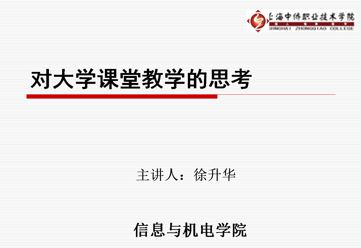 “一个人可以走的很快,一群人才能走的很远”为了更好的提高教育教学水平,促进教师专业化成长,我院全体教师于5月16日中午11点30分在4号楼303参加了由信息与机电学院院长徐升华老师主讲的以“对大学课堂教学的思考”为题讲座。