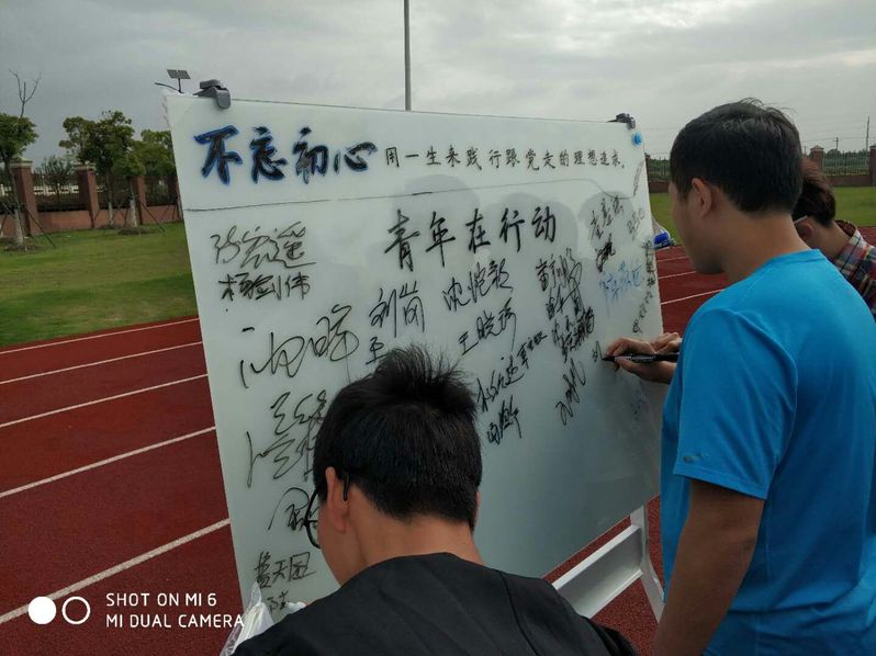 最后,主持人杨芬菲老师向全体同学发起倡议,号召大家纷纷在“青年在行动”的宣传板上签字,希望青年自觉肩负起时代赋予的历史使命,不忘初心,用一生来践行跟党走的理想追求,通过自己的实际行动来证明自己.