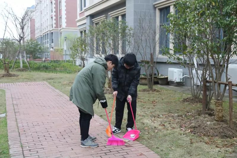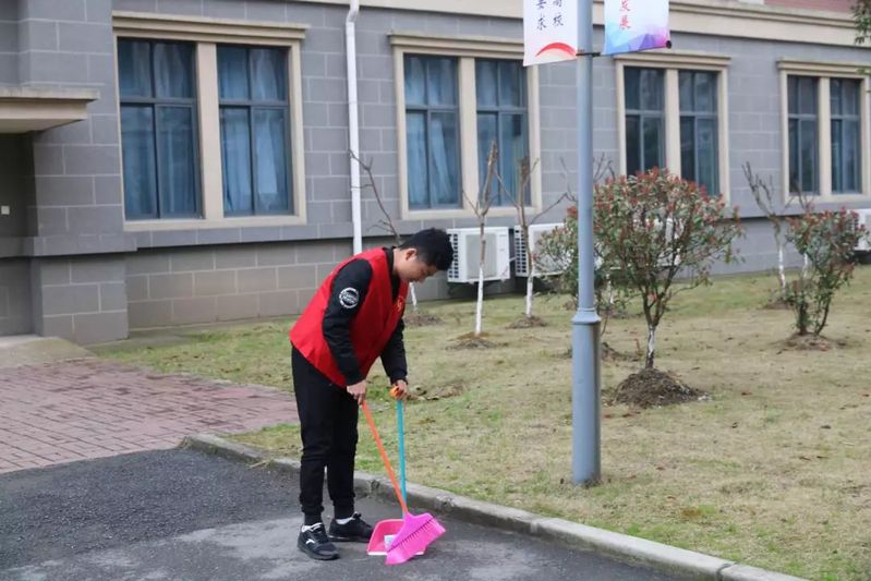 伴随着鸟儿的清脆歌声,全体参加学雷锋活动的同学们齐聚一起,大家分成了若干小组分散到学校的每个角落进行清洁活动。