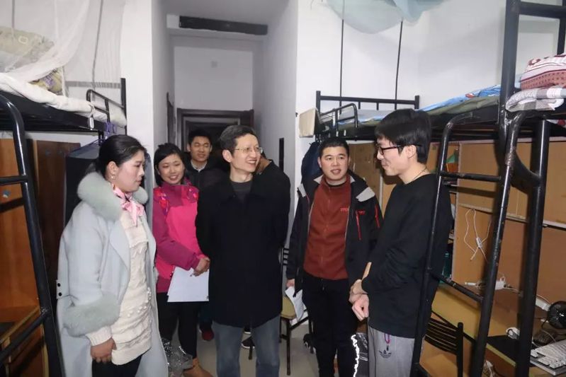 2018年3月6日晚,信息与机电学院常务副院长罗宁老师带领着党总支书记郑念老师,党总支副书记刘群老师及各位辅导员老师到学生宿舍关心学生们的生活情况。