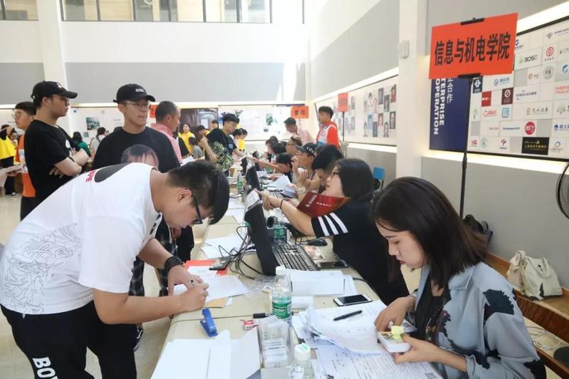 2018年9月5日,在各部门领导的带领下,我校开始了为期两天的迎新工作。而校园里最美丽的风景,当属多达100人的迎新志愿者队伍了,他们主要由学生会成员和学生积极分子组成。