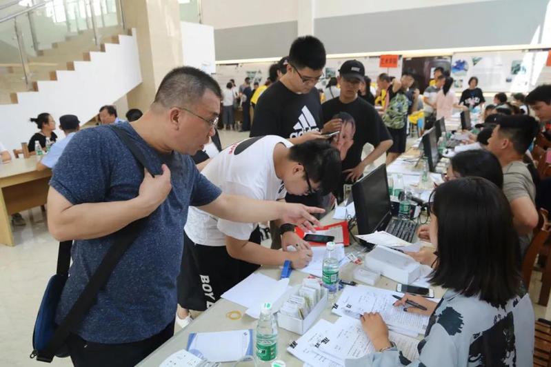早上八点钟,学生会的同学们已经来到迎新地点进行布置,半个小时后全部迎新队伍便已全部到齐,严阵以待。他们有的在门口举着校旗接应,有的在接待处耐心地接受家长和新同学的咨询,有的微笑着为学弟学妹办理手续,还有部分同学一直默默站在门口等待新同学办理完手续,带领他们去往宿舍区,纵然烈日炎炎,却不敌志愿者们的热情,积极主动地接过学生的行李。