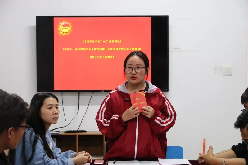 种晓老师在会议上给全体团支书推荐了三篇文章报告,分别是《习近平总书记“7.2”重要讲话》、《王沪宁:在中国共产主义青年团第十八次全国代表大会上的致词》以及《团十八大工作报告》。并指出共青团是党联系青年群众的桥梁和纽带,要紧紧围绕这个职责定位,为团出真招、出实招、不掩饰问题,带领青年,广泛发展青年。并强调共青团是党的助手跟后备军,要认真组织领导青年,让新时代的青年呈现新风貌。