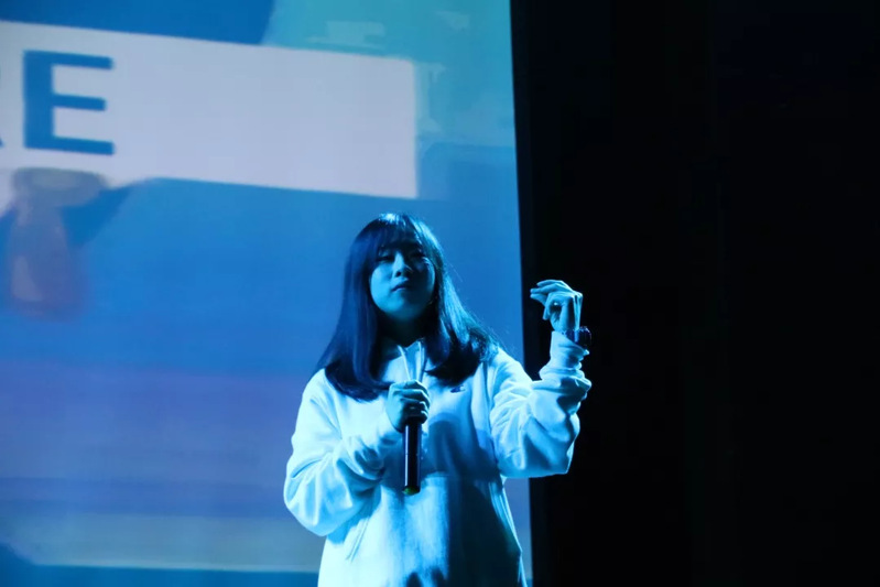 Zc.木兰作为全场唯一的女rapper,她的音乐像叙述故事一般,柔美又动人的声音将同学们带入其中。