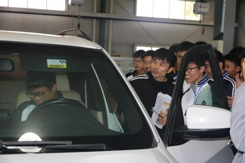 学生们来到学院汽车实训中心参观,实训室主任王海斌老师给同学们详细讲述了汽车知识概要和汽车维修相关注意点,带领学生近距离观看学习器材和汽车结构,并鼓励学生坐上汽车模拟器亲自感受驾驶的感觉。