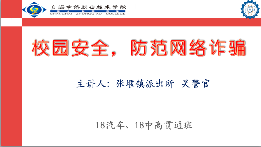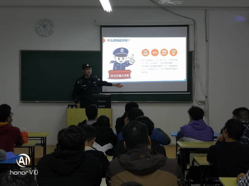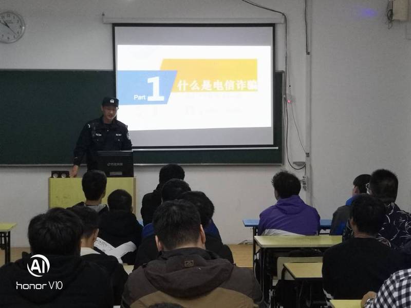 为增强学生预防电信诈骗的安全意识,提高对电信诈骗的鉴别和防范能力。2018年11月20日利用晚自习时间,有幸邀请了张堰派出所吴警官来到4号楼401教室给18汽车、18汽车中高班级同学开展了“预防电信(网络)诈骗”主题教育活动。