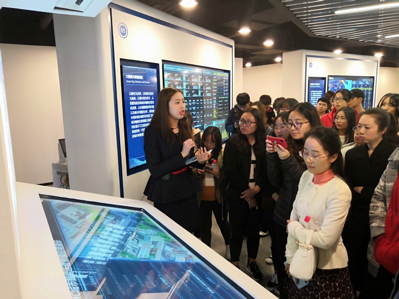 最后园区领导带领老师和同学们参观了上海大数据应用展示中心,讲解员向同学们讲解了“中国大数据资源地图”、“智慧商圈大数据洞察”、“电信理想-迪士尼旅游区域大数据洞察”等大数据应用展示项目,让我们领悟到了数据在各行各业中的重要性。