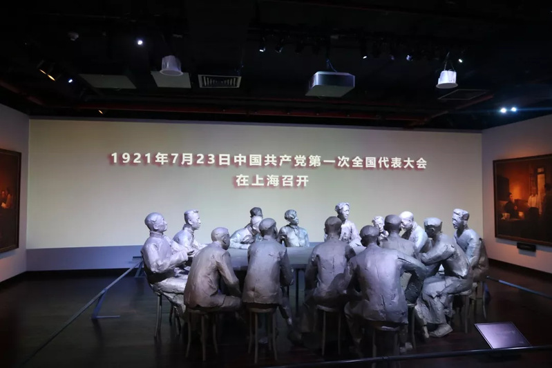 第四分党校的中党学员们首先参观了中国共产党第一次全国代表大会的历史重现场景。1921年7月23日,中国共产党第一次全国代表大会在上海法租界望志路106号开幕,宣告了中国共产党的正式成立。大型艺术品多媒体组合展项《一大首聚 开天辟地》吸引学员们纷纷驻足观看、留影纪念,它以雕塑、油画、视频、灯光等手段立体化地再现了中国历史上这一开天辟地的大事件。上海是近代中国的光明的摇篮,中国共产党在上海孕育、诞生,这有着深厚的社会基础和必然的历史逻辑。