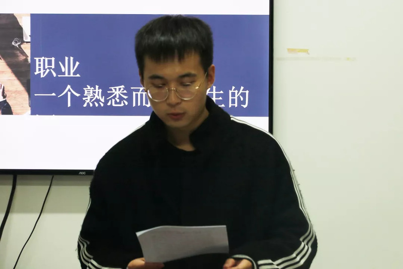 大数据1班的王云飞同学演讲了《职业--一个熟悉而又陌生的词》,他所认为的对于职业的理解是可以充实自己的生活,真正投入到具有职业魅力和感染力的工作中,可以体现自己的自身价值,回报社会的一份职业观。