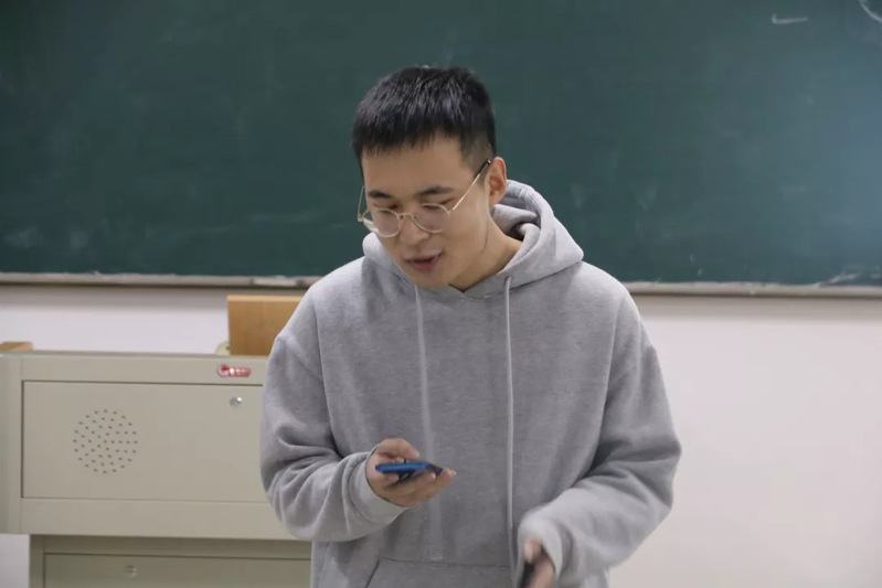 接下来参赛的选手是来自18大数据一班的邱浩然同学,因为设备原因无法现场给大家表演钢琴独奏《梦中的婚礼》,但这位同学非常用心,用手机提前录下了弹奏视频在场播放,他真诚的态度打动了在场的每一位观众。