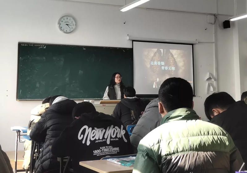 胡婉君老师为了让同学们有个更加直观的了解,精心准备了PPT并在上面详细展示学校禁烟区域:校内各教学区(图文信息楼、教学楼、实验实训场地等)、生活区(13号楼食堂、学生活动中心)、宿舍区(宿舍楼和宿舍楼间区域)、操场、校园各道路等均为公共场所。赵淑静老师也认为青少年学生吸烟不仅会伤害身体,还会影响发育、降低免疫力、影响学习成绩、增加家庭经济负担,危害学生品行。很多同学借用香烟等麻痹神经的药物来抒发自己的情绪,赵老师认为这是一种很幼稚的表现,同学们应该避免出现这种不良嗜好并及时纠正。