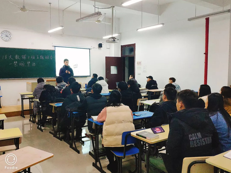 在响应无烟校园活动背景下,各个班级的主题班会都在如火如荼地进行,辅导员姜晶晶老师和18大数据1班的同学们一起讨论了“被动吸烟”的问题。被动吸烟是指在狭小的空间中吸烟者对不吸烟者造成的危害,也就是大家一直常说的二手烟。这种危害实在不能轻视,有研究认为被动吸烟对健康的影响甚至比主动吸烟的危害更大。18大数据2班的辅导员镡老师也提醒同学们一定不要吸烟,而且还要劝阻吸烟的同学们,在遇到吸烟的同学要勇敢上去提醒并制止,整治校园风气。