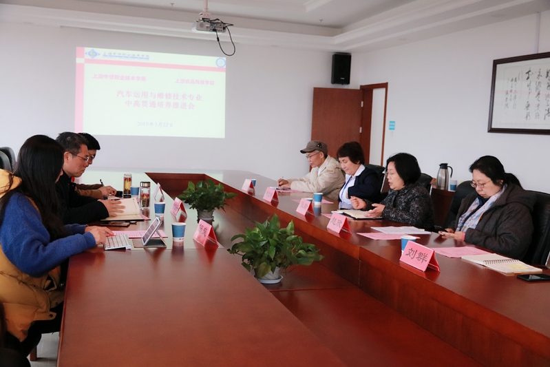 为了进一步推动汽车运用与维修专业中高职贯通培养模式试点工作,3月22日上午午,上海食品科技学校校长金四云、汽车专业科长沈秀军、汽车专业副科长邹岚一行几位领导来校进行中高职贯通培养工作专题研讨。我校副校长张瑜,信息与机电学院常务副院长黄立新,副院长赵欣,党总支书记刘群、专业主任徐兆坤等参加了研讨会。