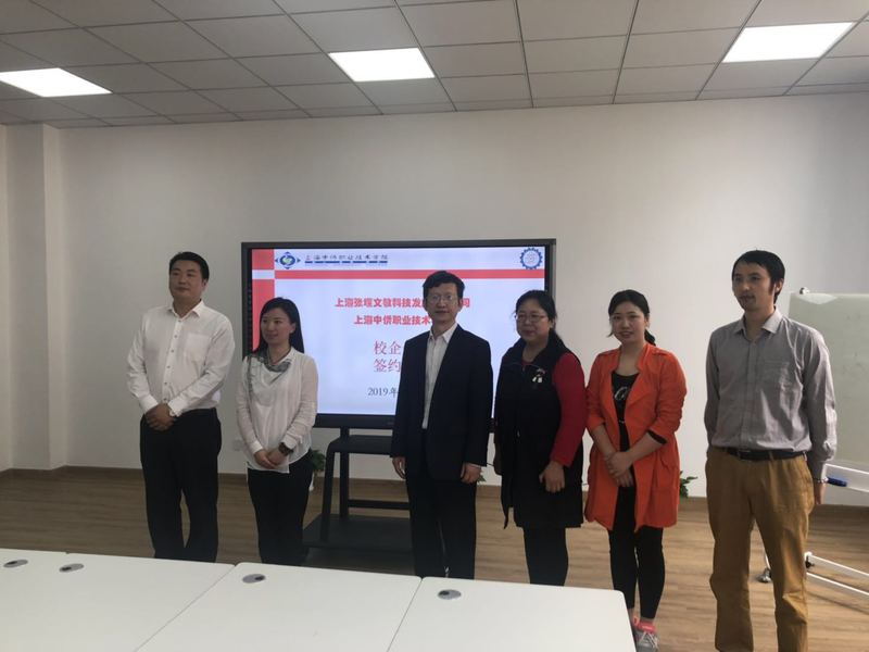 由上海中侨职业技术学院副校长罗宁教授与张堰文教科技发展有限公司副总经理刘玮共同签署校企合作合同,双方对提高信息与机电学院同学专业技术,培养人才有效方式正式达成信息共享的“双赢”战略合作模式。