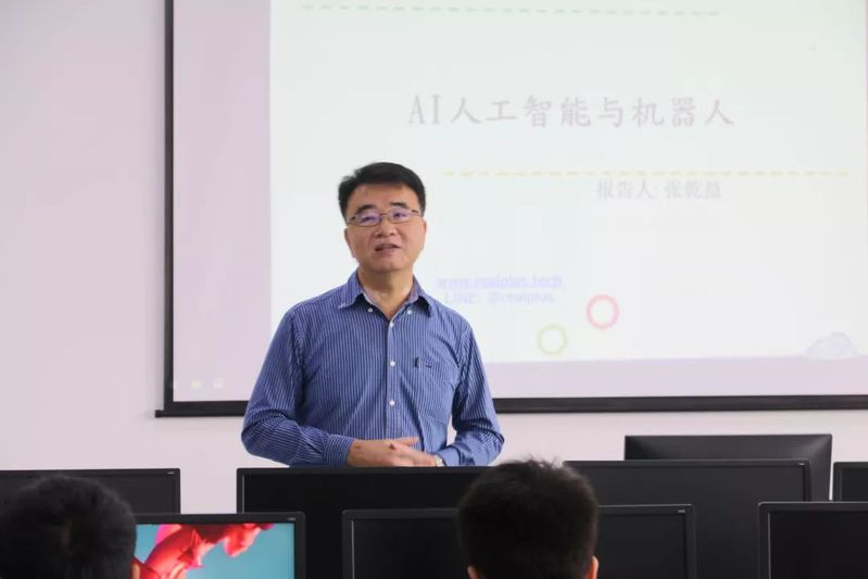 应信息与机电学院邀请,张乾益教授于5月30日下午在九号楼203教室开展主题为《AI人工智能与机器人》的讲座,本次讲座由信息与机电党总支书记刘群老师主持,吸引了18级计算机应用专业的学生参与其中。张教授曾是中国台湾彰化师范大学电机所硕士,台湾睿扬创新科技总经理,上海恒安卓越科技总经理,多所大学及高中业界讲师(两岸),具有15年竹科半导体行业经验。