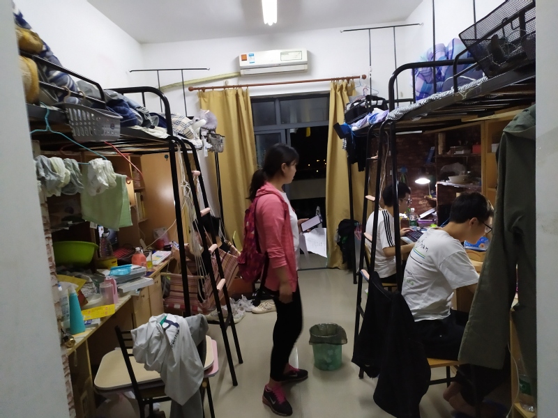 在党总支书记刘群的带领下,6名辅导员集合完毕后,分工分组,将学院学生所在15、17、19、22、23栋宿舍楼进行检查。辅导员走进学生宿舍点人数、了解未到学生情况、检查违章电器使用情况。检查完毕后,统一统计汇报。本次宿舍检查,进一步规范学生在校期间遵守规章制度、严格遵守学校考勤纪律、遵守学生手册相关条例规定。