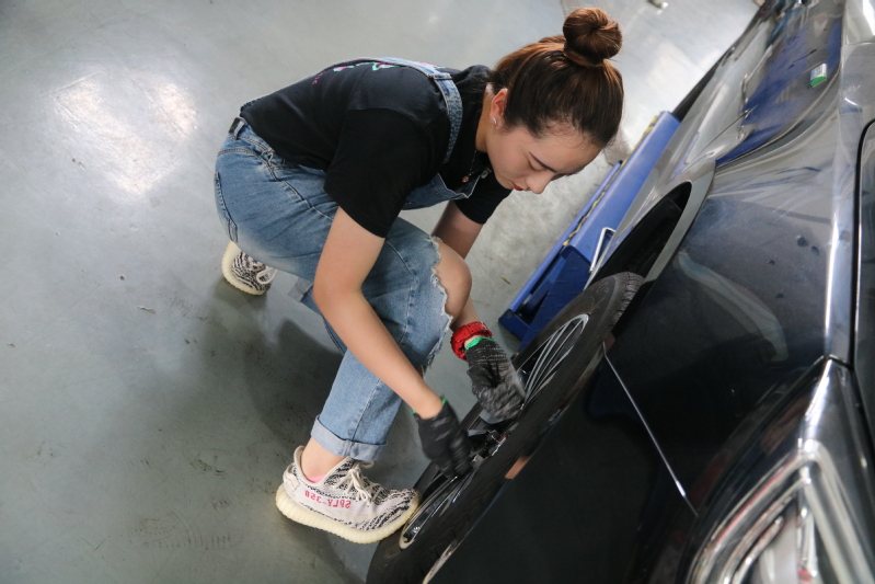 专业组的选手们,手法娴熟,工具运用到位,两人一组共四个车轮,看似简单的工作,尽管是专业组,一轮下来也是个个汗如雨下。他们通过正确放置千斤顶卸胎或使用专业举升机举升车辆卸胎,卸下四轮并完成前后交换轮胎,安装轮胎,检查轮胎,工具归位等工序,整个比赛好中求快,由两位志愿者同时计时,由评委指示开始,参赛选手完成工序两人喊报告停止计时。通过比赛,有效的提高了学生们轮胎拆装的水平,同时也激发了同学们对汽车的爱好,王老师说道:“大赛秉承友谊第一,比赛第二的原则,切磋专业技能,鼓励大家学习汽车日常基础修理技术。”