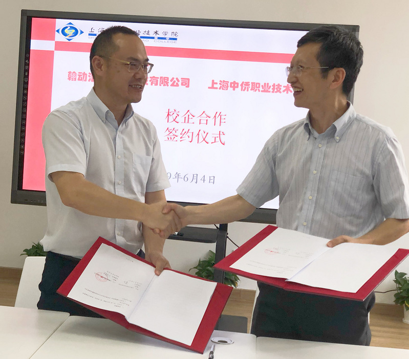 由上海中侨职业技术学院副校长罗宁教授与上海翰动浩翔航空科技有限公司总经理陈光文共同签署校企合作合同,双方对提高信息与机电学院同学的专业技术,培养人才有效方式正式达成信息共享的“双赢”战略合作模式。