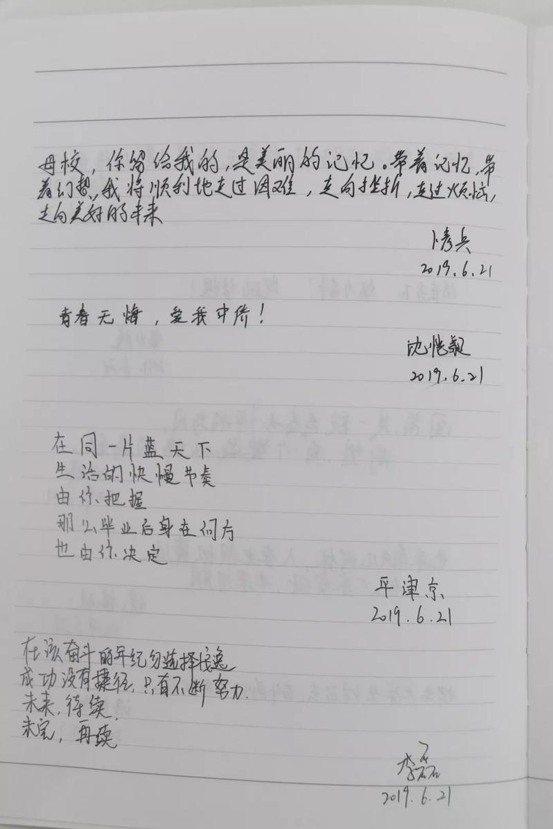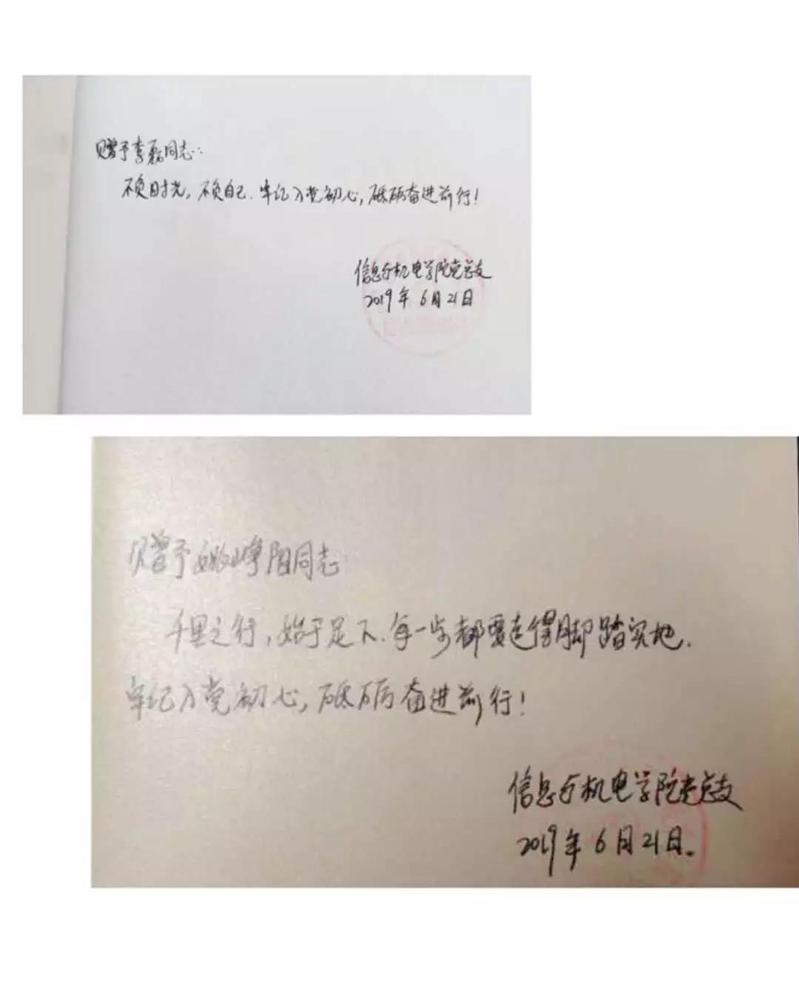 三年,从懵懵懂懂对党的认知,到初党、中党、高党、发展对象、预备党员、正式党员,这一路走开,从思想上、在生活中,用实际行动跟紧我党的步伐。每位党员写下了对母校的祝愿: