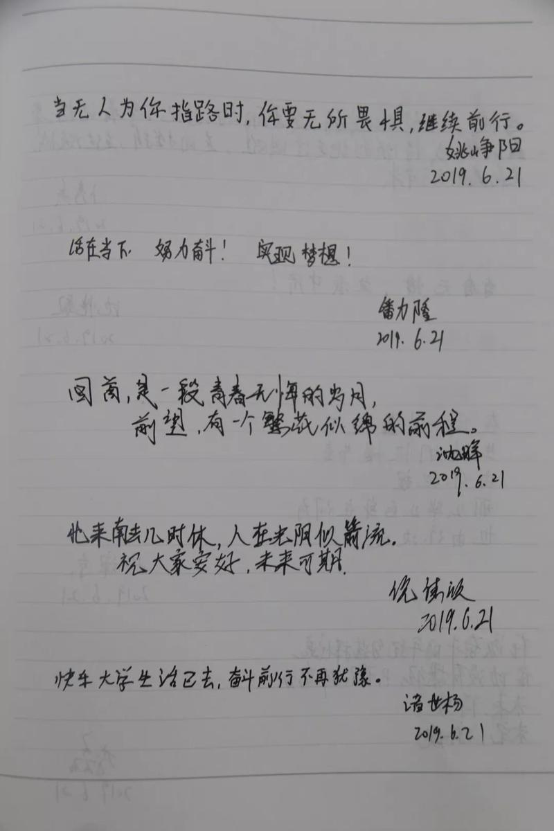 4.谨记校训。牢记“做人,做事,做学”的校训,以最饱满的精神面貌走上新的岗位,充分发扬母校的优良传统和作风,为学弟学妹树立良好的榜样。积极发挥党员先锋模范作用。