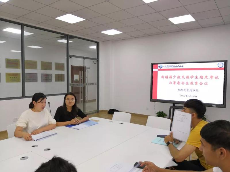 6月26日17:00,在9号楼306室召开了新疆籍少数民族学生期末考试与暑期安全教育工作会。少数民族辅导员孜拉吉古丽·热依木、信息与机电学院党总支书记刘群老师以及新疆籍少数民族学生参加了此次会议。