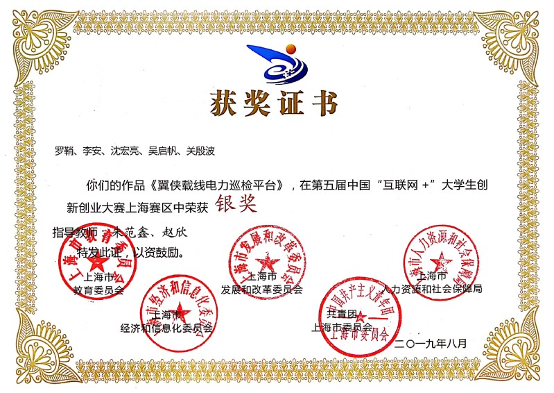 赵欣、朱范鑫老师指导的“翼侠载线电力巡检平台”(罗鞘,沈宏亮,吴启帆,李安)项目获得银奖.