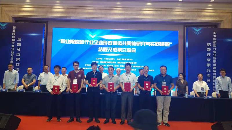 2019年9月26日,由中华职业教育社和机械工业教育发展中心联合主办的“职业院校和行业企业形成命运共同体研究与实践课题”结题及成果交流会在福州举行。第十一届全国人大常委、民盟中央原专职副主席、中华职业教育社原副理事长李重庵、中华职业教育社专家委员会副主任、国家教育行政学院学术委员会主任邢晖等领导出席会议并讲话。中华职业教育社党组成员、副总干事、总课题组副组长杨农宣读了表彰决定。福建省委统战部常务副部长臧杰斌,福建船政交通职业学院党委副书记、院长陈锦辉分别致辞。全国机械职业教育教学指导委员会主任、机械工业教育发展中心主任、总课题组副组长陈晓明主持开幕会议。