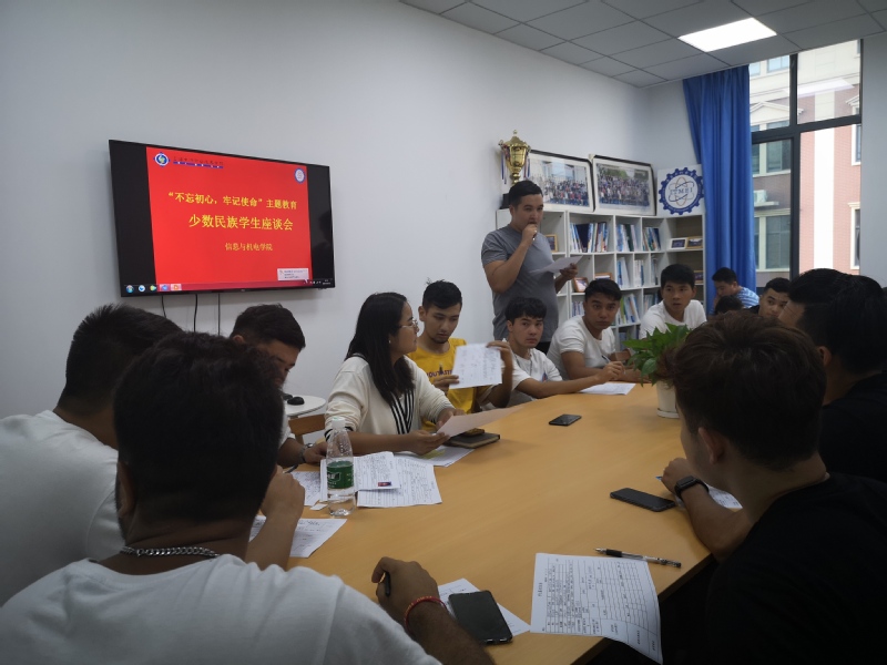 10月10日16:00,我院在9-304召开了“不忘初心,牢记使命”主题教育暨新疆籍少数民族学生座谈会,出席本次会议的有少数民族辅导员孜拉吉古丽·热依木、信息与机电学院相关辅导员老师,以及全部新疆籍少数民族学生。会议旨在督促少数民族学生不忘初心,牢记使命,并进一步关心少数民族学生的学习、生活,切实解决大家新学期的困惑,帮助少数民族学生成长成才。