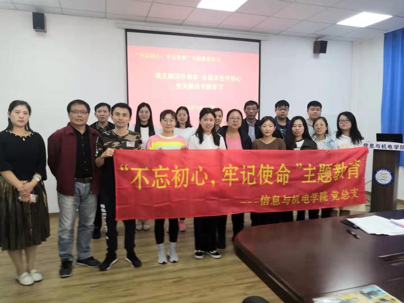 2019年11月6日中午,信息与机电学院利用主题大讲堂的形式将“不忘初心、牢记使命”主题教育与党风廉政建设纪律教育紧密结合,以高度的政治自觉和饱满的精神状态将主题教育活动推向高潮。全体教职员工参加了此次教育活动。党总支刘群主持本次活动。